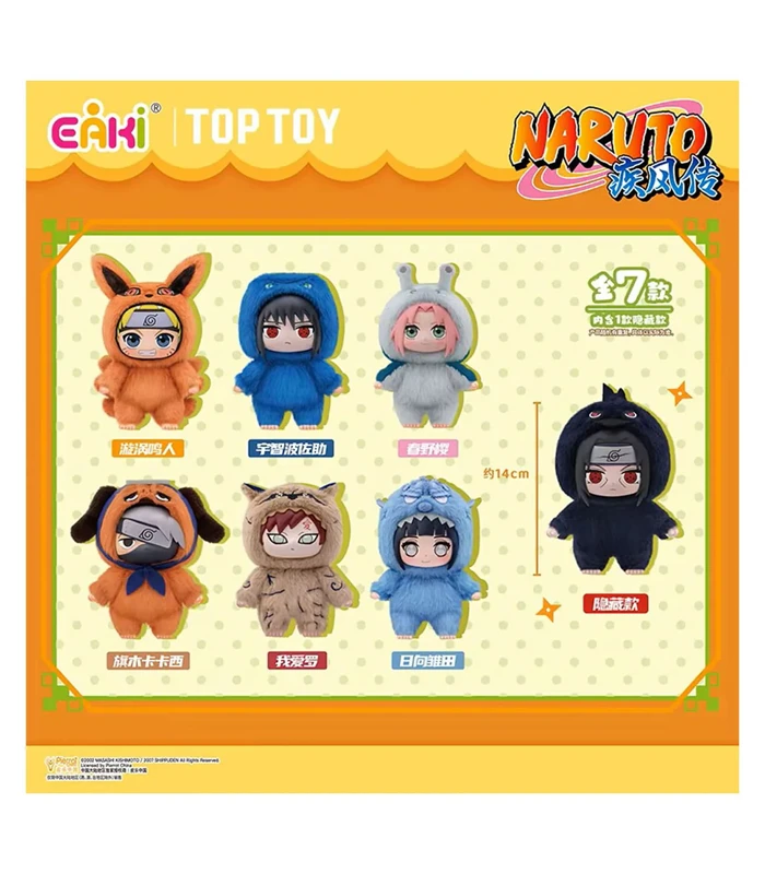 Découvrez la Blind Box Naruto EAKI – Mini Peluche Surprise, une collection adorable inspirée de l’univers de Naruto Shippuden et du style Labubu, qui cartonne actuellement chez les collectionneurs. Chaque boîte contient une mini peluche mystère de 14cm, représentant l’un des ninjas emblématiques de la série dans un costume animal aussi drôle que mignon.